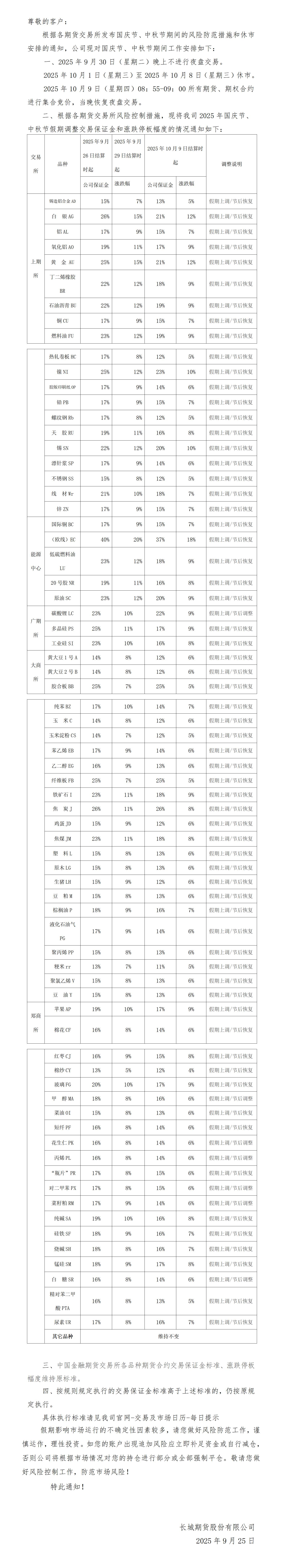 关于做好2025年国庆节、中秋节期间客户风险管理的通知