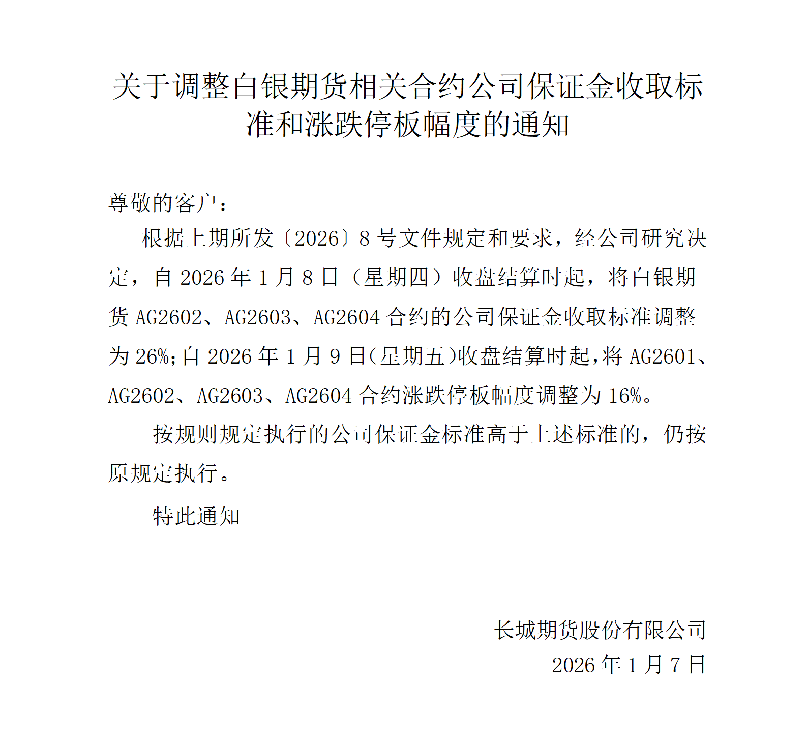 关于调整白银期货相关合约公司保证金收取标准和涨跌停板幅度的通知
