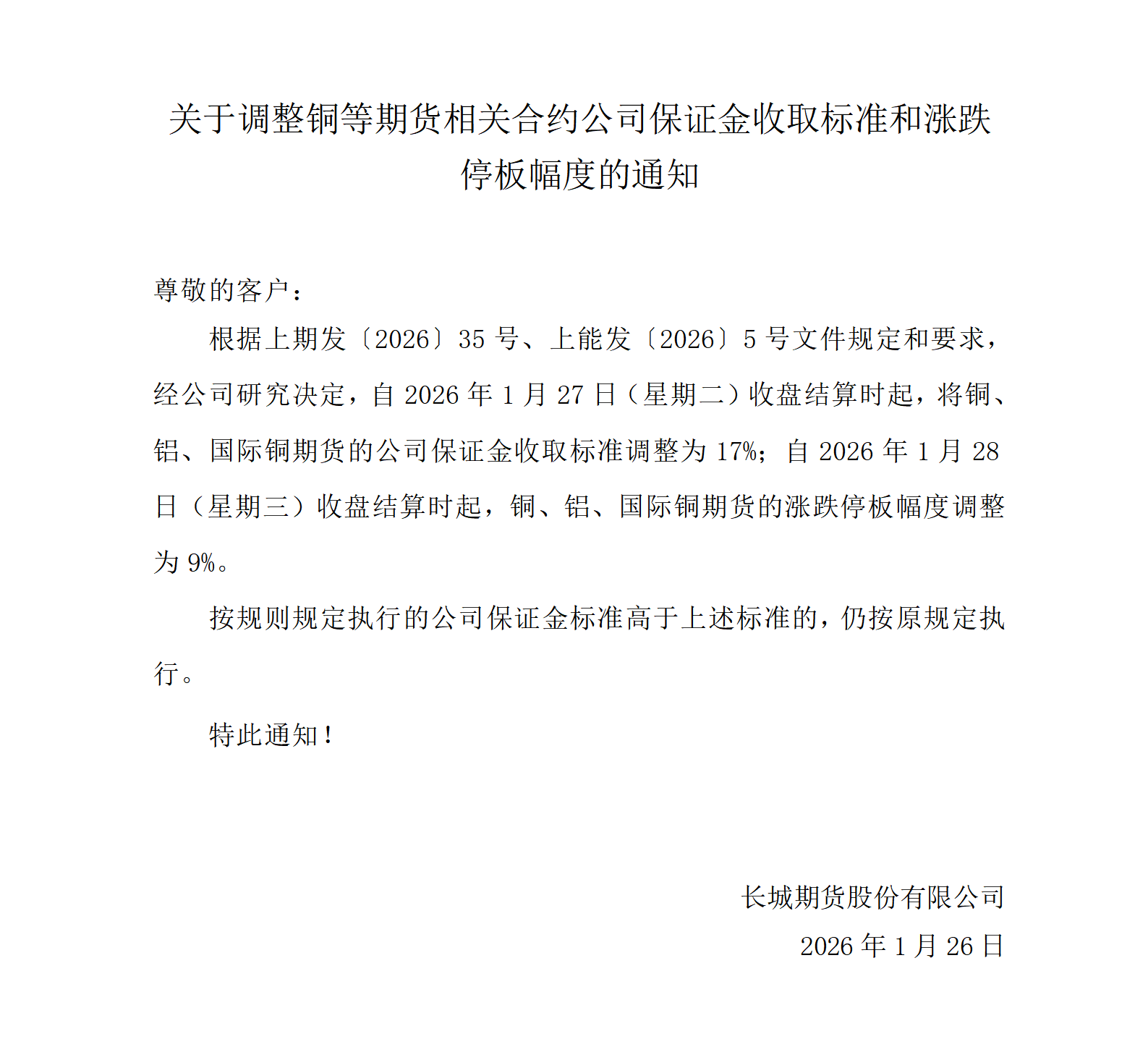 关于调整铜等期货相关合约公司保证金收取标准和涨跌停板幅度的通知