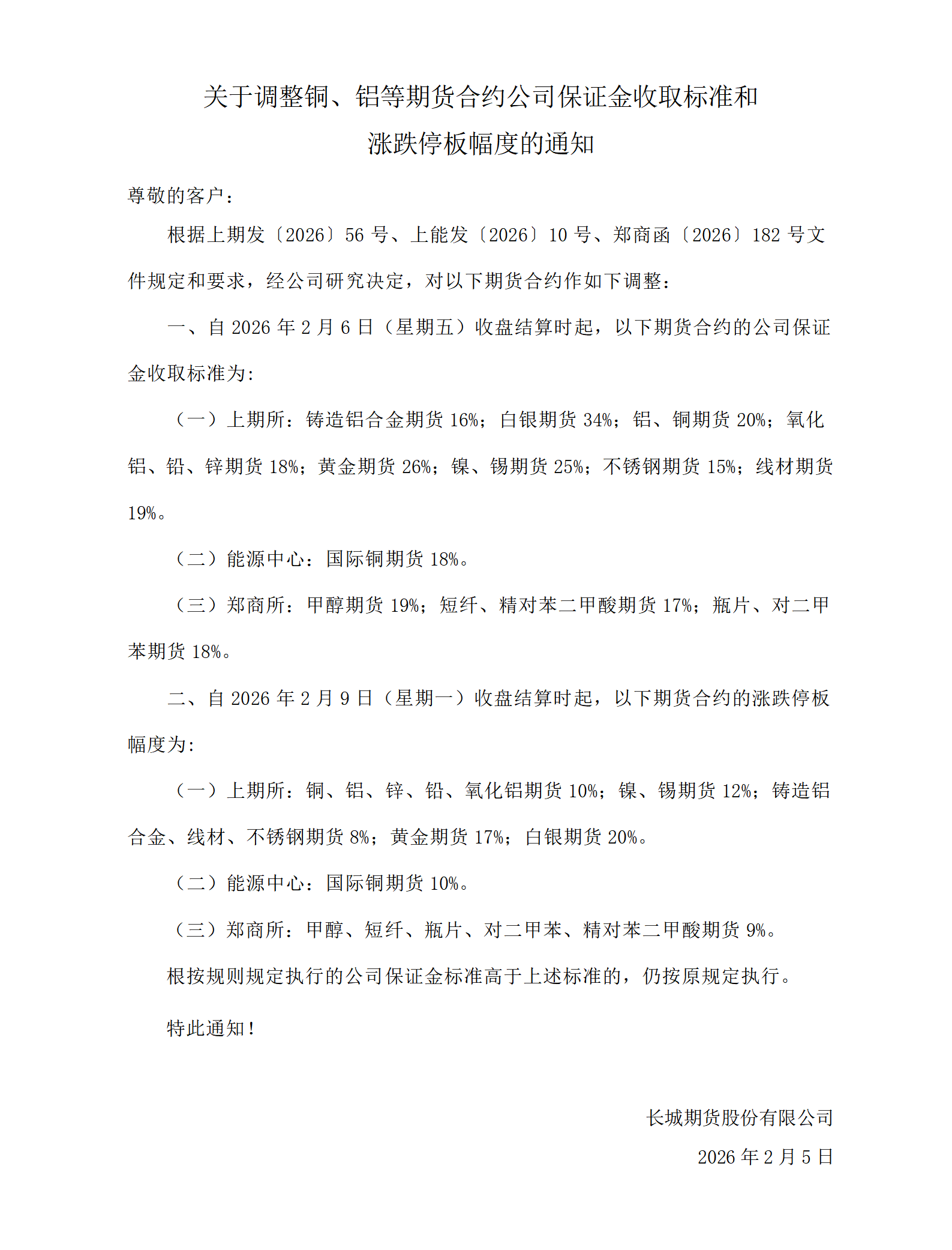 关于调整铜、铝等期货合约公司保证金收取标准和涨跌停板幅度的通知