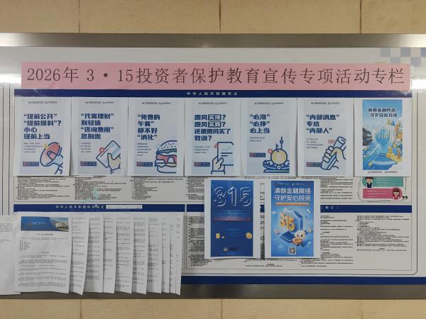 此次“3·15”宣传教育活动,不仅面向投资者及社会公众开展了全方位的知识普及,更是投资者保护工作做深做实的具体体现。活动有效提升了公众的金融素养与风险防范意识,巩固了投资者依法维权、理性参与市场的观念,为共同营造健康、清朗、有序的金融市场环境贡献了积极力量。